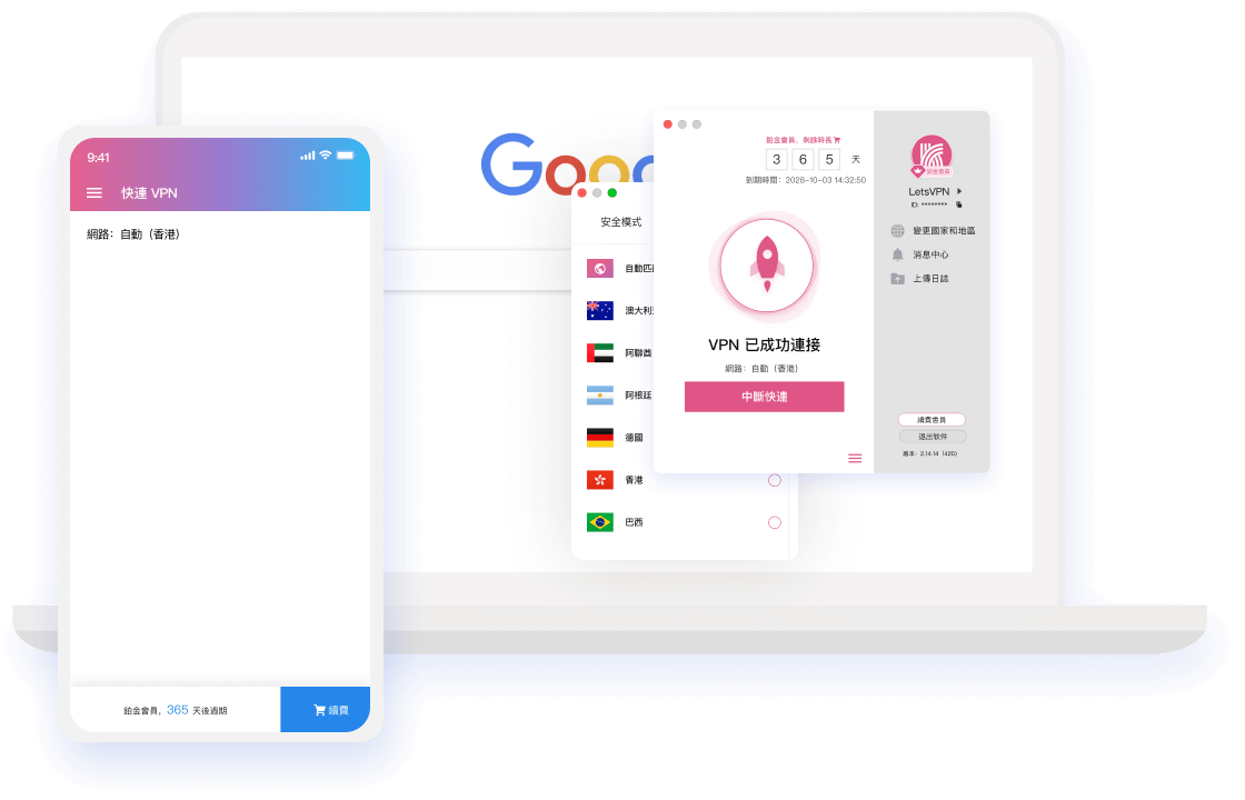快連 VPN 支持市面上所有主流的設備,只需一個賬號即可在多個設備中共享會員,支持多設備同時在線,保障您不同使用場景下的無縫銜接。